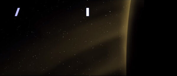 映画のはじまりのはじまり、20世紀FOXのファンファーレが鳴り響き、暗転し――ゆっくりと宇宙が現れます。