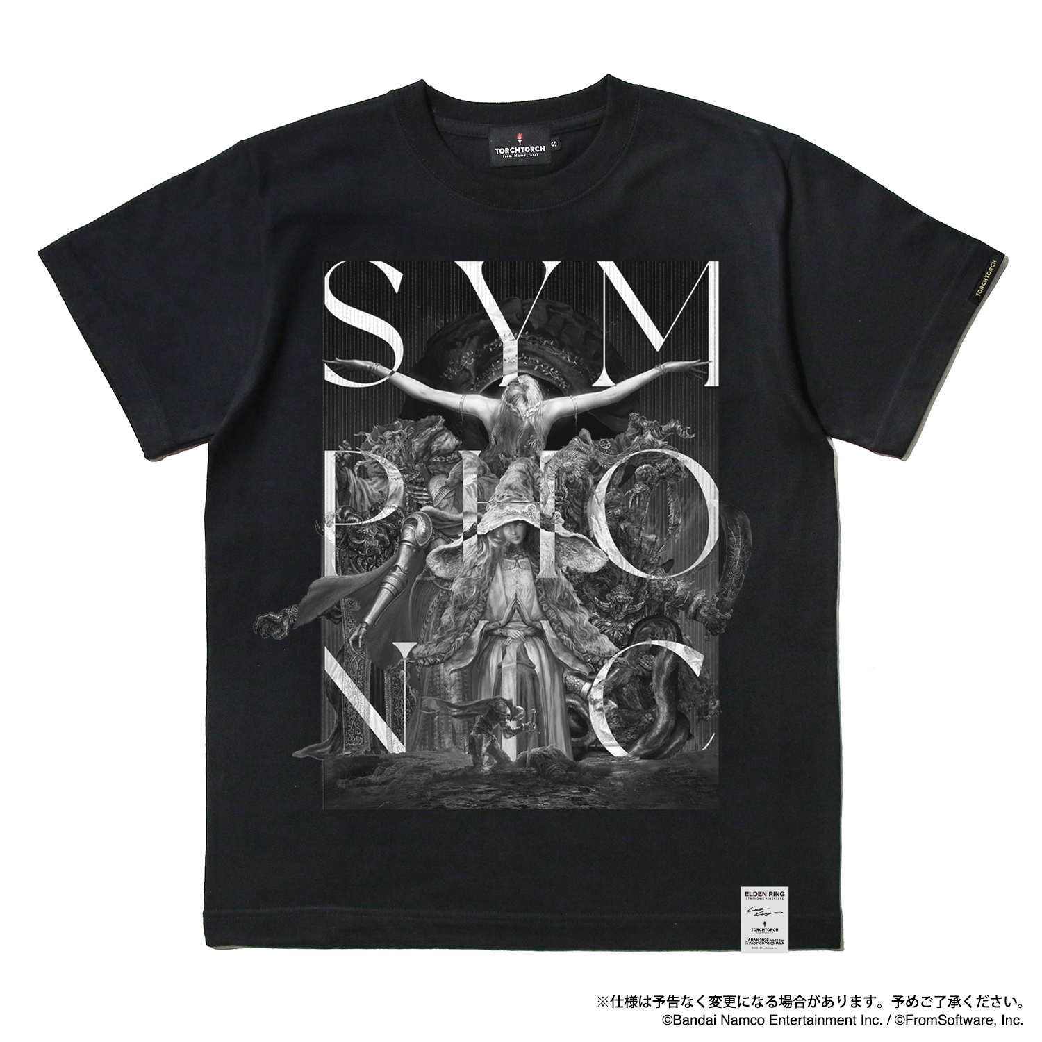 裾には、『ELDEN RING NIGHTREIGN』を象徴するシンボルを昇華転写で美しく表現したネームタグを配置しました。このアイテムだけに付いている、内側のケアラベルもお楽しみください。